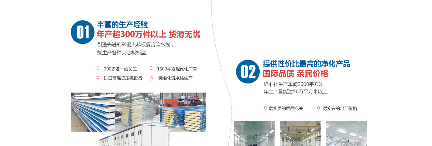 蘇州巨百凈化產品有限公司是一家從事研發、銷售、凈化彩鋼夾芯板、凈化產品及設備的公司。擁有全新機制彩鋼夾芯板生產線的合作伙伴, 日均產量可達6000平方,以提供凈化工程配套產品的設計、制作、安裝、維護。經營范圍包括凈化彩鋼板、凈化配件、凈化產品、凈化燈具、凈化鋁型材銷售,凈化工程、無塵車間、實驗室項目的設計、安裝和信息咨詢。主要銷售產品有凈化彩鋼板巖棉板、琉氧鎂板、中空玻鎂板、聚氨酯板、凈化燈、凈化鋁型材、凈化門、鋼質門、FFU、凈化燈具、風淋室、傳遞窗、凈化設備等,承攬各種潔凈房、實驗室的設計、制作...